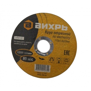 Круг отрезной по металлу ВИХРЬ 115х1,0х22 мм